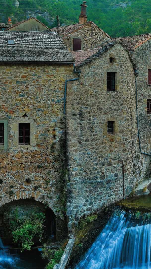 It may look peaceful now, but on warm days the river below this mill attracts swimmers, kayakers, and the occasional sport fisherman. Moulin de Corps (Corps Mill) connects to a stone bridge that spans the Dourbie River in a gorge deep within the Grands Causses Regional Nature Park of southern France. Built by a French lord in the 14th century, the mill originally produced flour. But by the 20th century it had been converted to the private residence we see in today"s picture. The Grands Causses Regional Nature Park is home to hundreds of mills like this one, examples of a cultural heritage that can still be found throughout the Mediterranean agro-pastoral landscape.