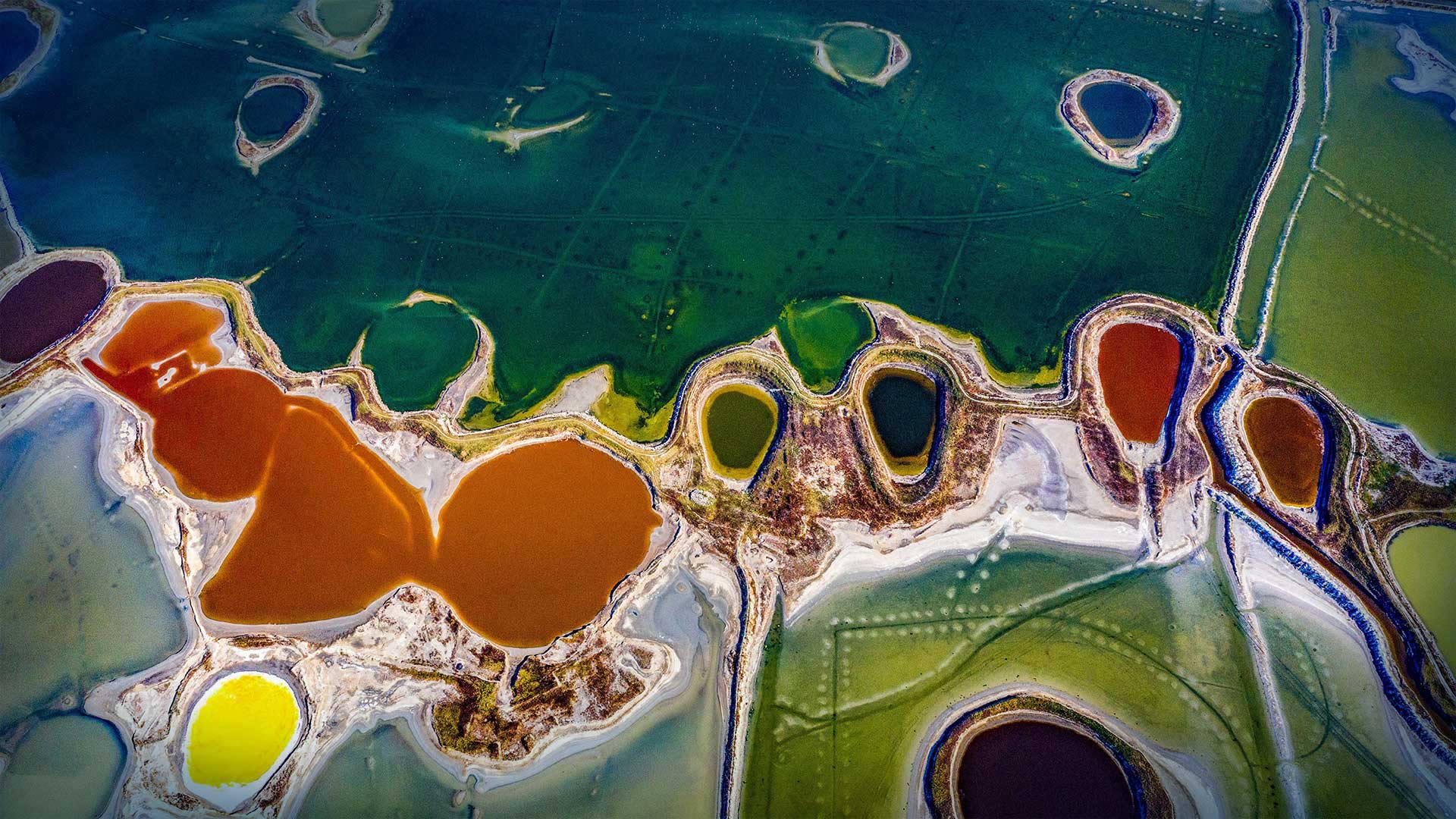 Xiechi Lake in Yuncheng, China, has such a high level of salinity, it"s sometimes called China"s Dead Sea. But unlike the Dead Sea in the Middle East, Xiechi Lake supports abundant microscopic life: algae and other microorganisms that have a high tolerance for the salt. In summer and autumn, the lake temperature is high enough to spark algae blooms, bringing a variety of intense colors to the lake water.