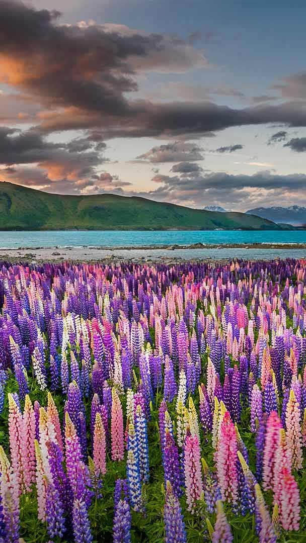 Lupines—or "lupins" as they"re generally called here in New Zealand—usually hit peak bloom around mid-to-late November in the Mackenzie region of the South Island. This image shows the burst of color along the shores of Lake Tekapo, famed for its annual lupin blooms. The colorful carpets of purples, pinks, blues, and whites along waterways and roads look stunning, drawing tourists to the area, and locals appreciate the economic benefits that come with these visitors. But lupins hail from North America, and in New Zealand, they"re considered invasive species that crowd out native flora, ruining the habitat for birds like the wrybill, banded dotterel, and other species that live along the waterside.