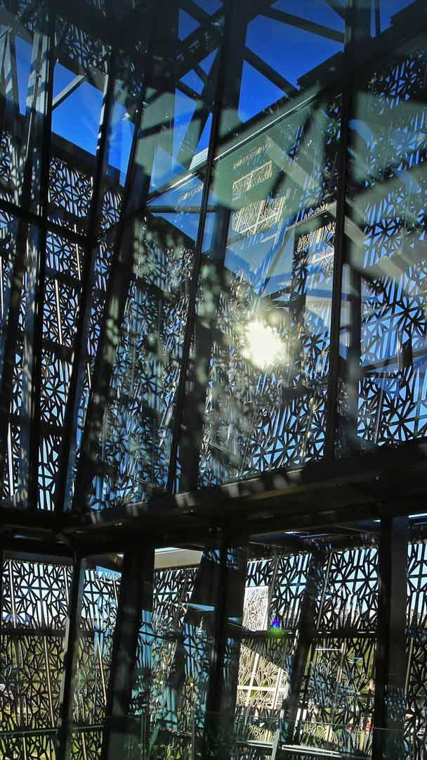 Join the Smithsonian as we celebrate Black History Month with the help of our National Museum of African American History and Culture (NMAAHC). This stunning image of the museum looks out through its intricate, bronze-colored façade to the National Mall. The museum’s breathtaking exterior, a corona rising in three dramatic tiers, evokes the crowns found in the Yoruba art of West Africa, and its ornate design echoes the decorative ironwork found in the American South, often forged by African American slaves and freed Black Americans. The façade allows natural light to filter into the museum while also protecting artifacts on display from direct sunlight and glare.