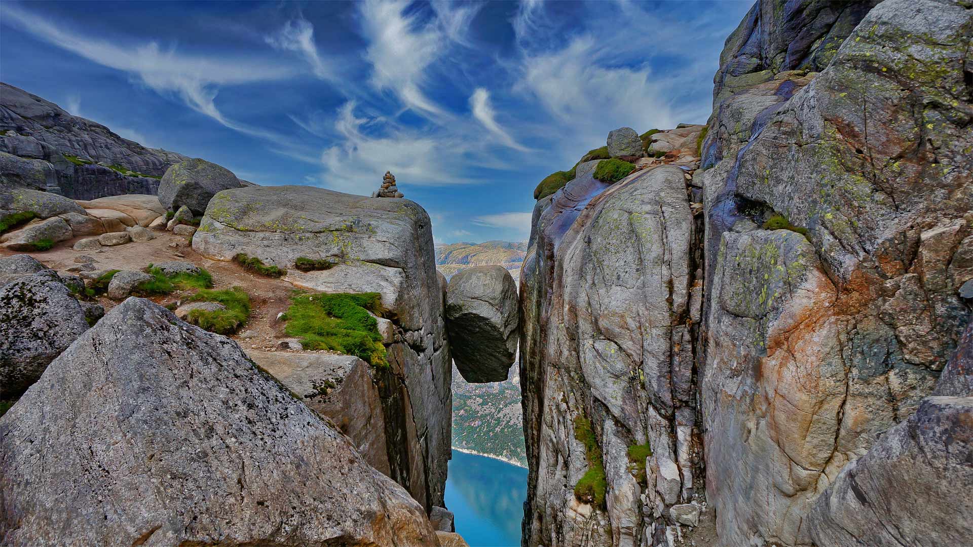 If you have nerves of steel, you"d enjoy the precarious, one-of-a-kind photo op that is the Kjeragbolten boulder. Visitors climb up Kjerag, a mountain on the southwest coast of Norway, for the chance to clamber onto the stranded rock and have their daredevil pic snapped for posterity. Indeed, Kjeragbolten is so popular that you might have to wait up to an hour for your turn—plenty of time for second thoughts and jitters.