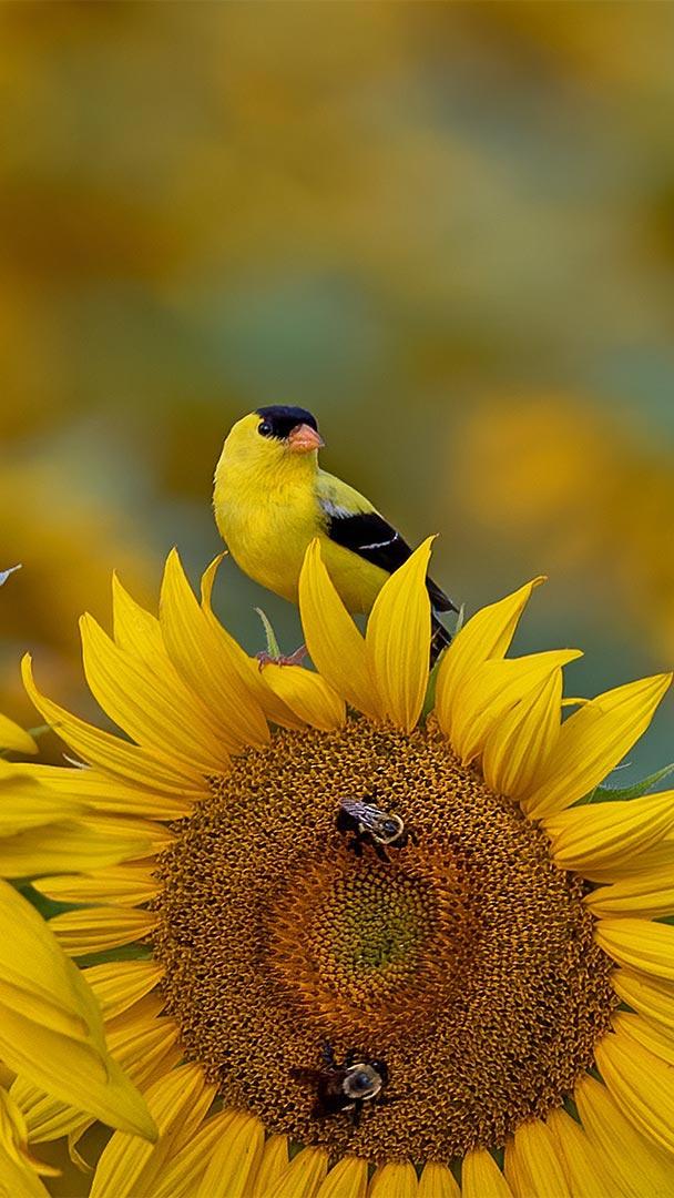 Birds, bees, and flowers grace today"s photo, but we"re going to bet that potato chips will be what you remember tomorrow. First the basics: We"re in South Carolina looking at a beautiful American goldfinch perched atop a sunflower. While the matching color scheme makes for a great photo, it"s likely this little bird has stopped for a meal. American goldfinches are among the strictest vegetarians in the bird world, preferring grains and seeds, especially sunflower seeds. That"s why it"s not uncommon to see them in neighborhoods with well-stocked bird feeders. In fact, human activity has generally benefited American goldfinches overall. The birds thrive in areas where forests have been removed—they prefer open meadows or fields covered in weeds.