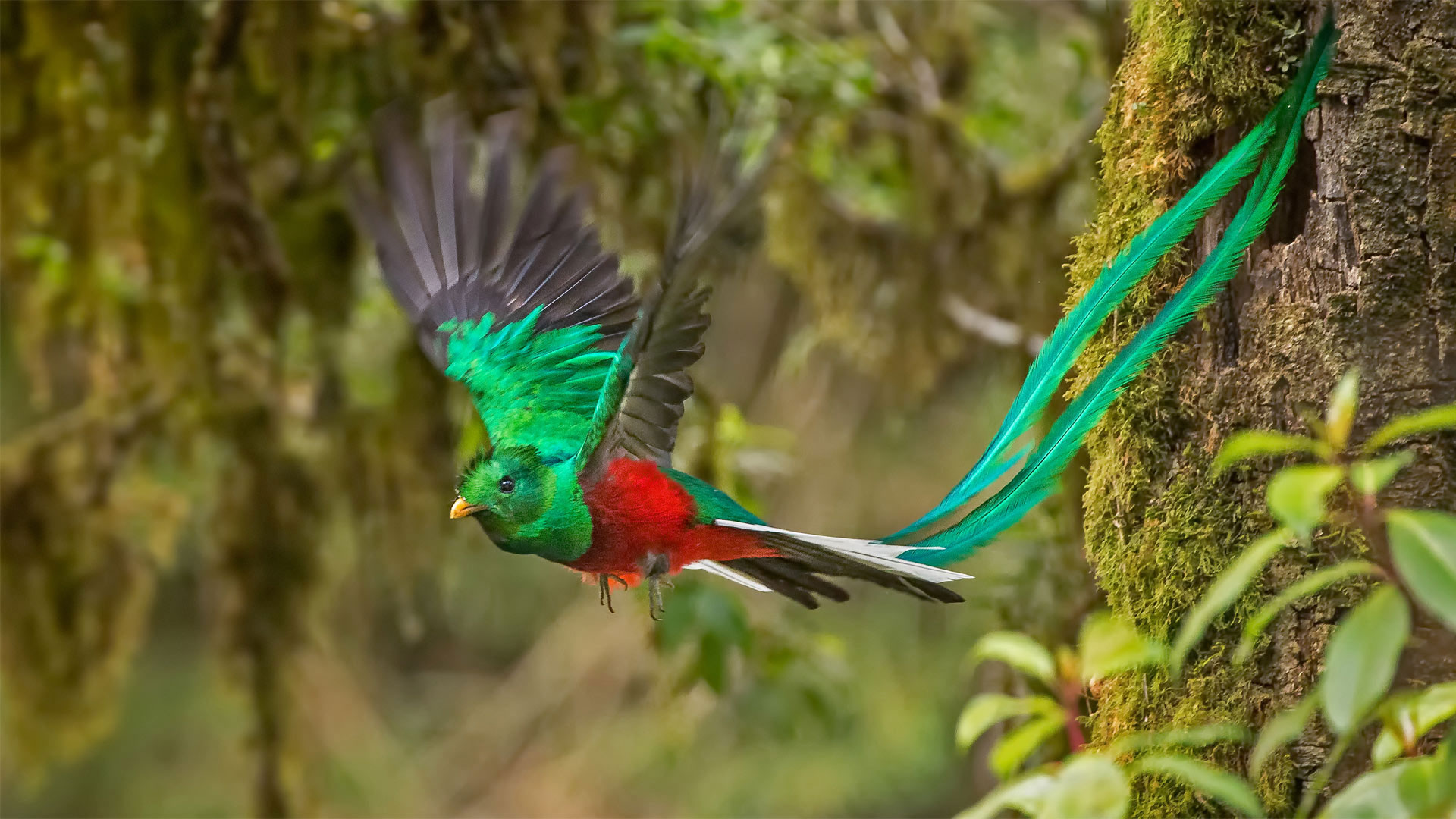 Both male and female resplendent quetzals have the bright body feathers, though the color on males is generally even brighter. During mating season, the males—like this one, photographed in Costa Rica—grow double tail feathers that usually measure longer than the bird’s body. In fact, some tail feathers can form a train up to three feet long. If you want to celebrate Draw a Bird Day today, maybe the resplendent quetzal will inspire you. Time to break out the crayons?