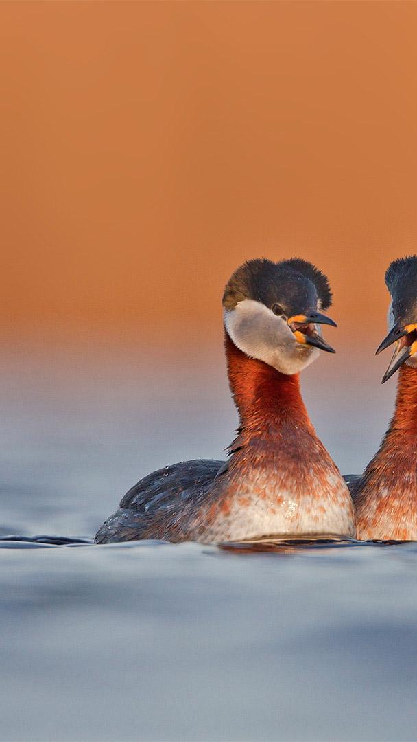 Red-necked grebes during breeding season © Edo van Uchelen/Minden Pictures