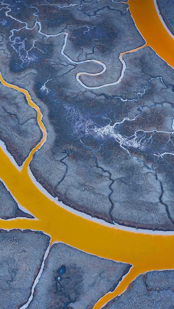 You might be wondering where the volcano is in today"s photo, but that"s not lava. These are salt flats in San Francisco Bay—many of these tidal marshes have been developed into evaporation ponds for the harvest of sea salt. If you happen to be in the air and flying over this part of the country, you"ll notice pools of not just bright orange but green, blue, and even magenta among the famous salt ponds. The vibrant colors are determined by brine shrimp, algae, and other microorganisms and their responses to different levels of salt. This orange results from a mid-level saline concentration and the presence of tiny brine shrimp in the water. Green indicates low levels of salt, while pink or red are signs of high salt content in an algae-rich pond.