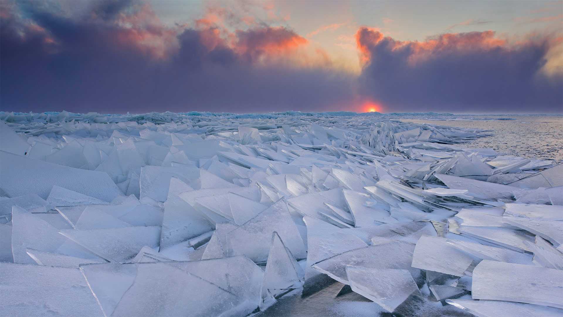 Lake Peipus, the fifth-largest lake in Europe, dates back hundreds of millions of years to the Paleozoic Era and is known for its sand dunes, which can "sing" when the wind blows just right. In the winter the frozen lake surface may feature ice hummocks, as seen in this image. The hummocks are caused by slow, uneven pressure in the ice pack.