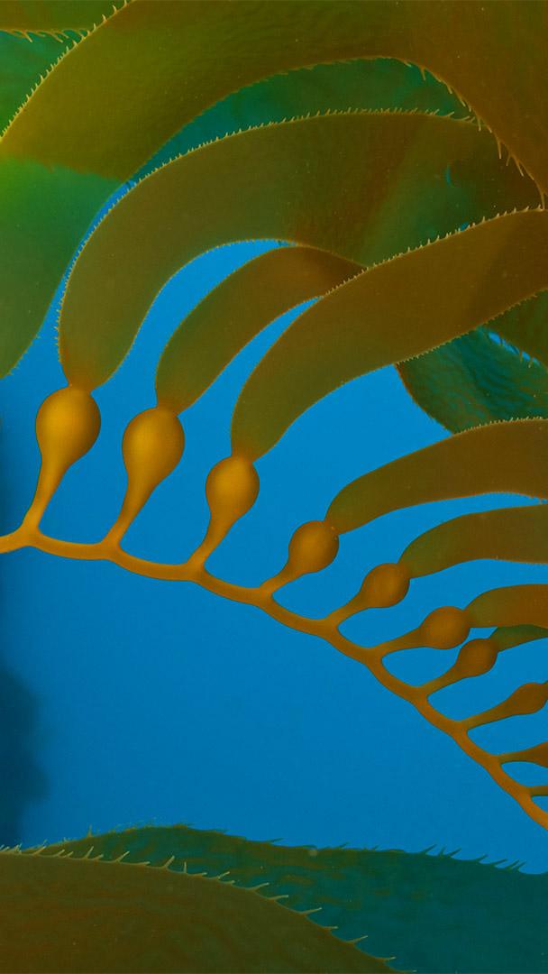 All along the Pacific Coast of North America, giant stands of kelp up to 100 feet high, like this one in California"s Channel Islands, provide habitat for a vast number of fish, invertebrates, and sea mammals. Giant kelp, technically a type of brown algae, is the largest of all seaweed and one of the fastest-growing of any organism—as much as 2 feet per day! The gas-filled pods you see in this image help the kelp float. Like the trees in the Amazon, the kelp forests of our oceans are key to the health of marine life.