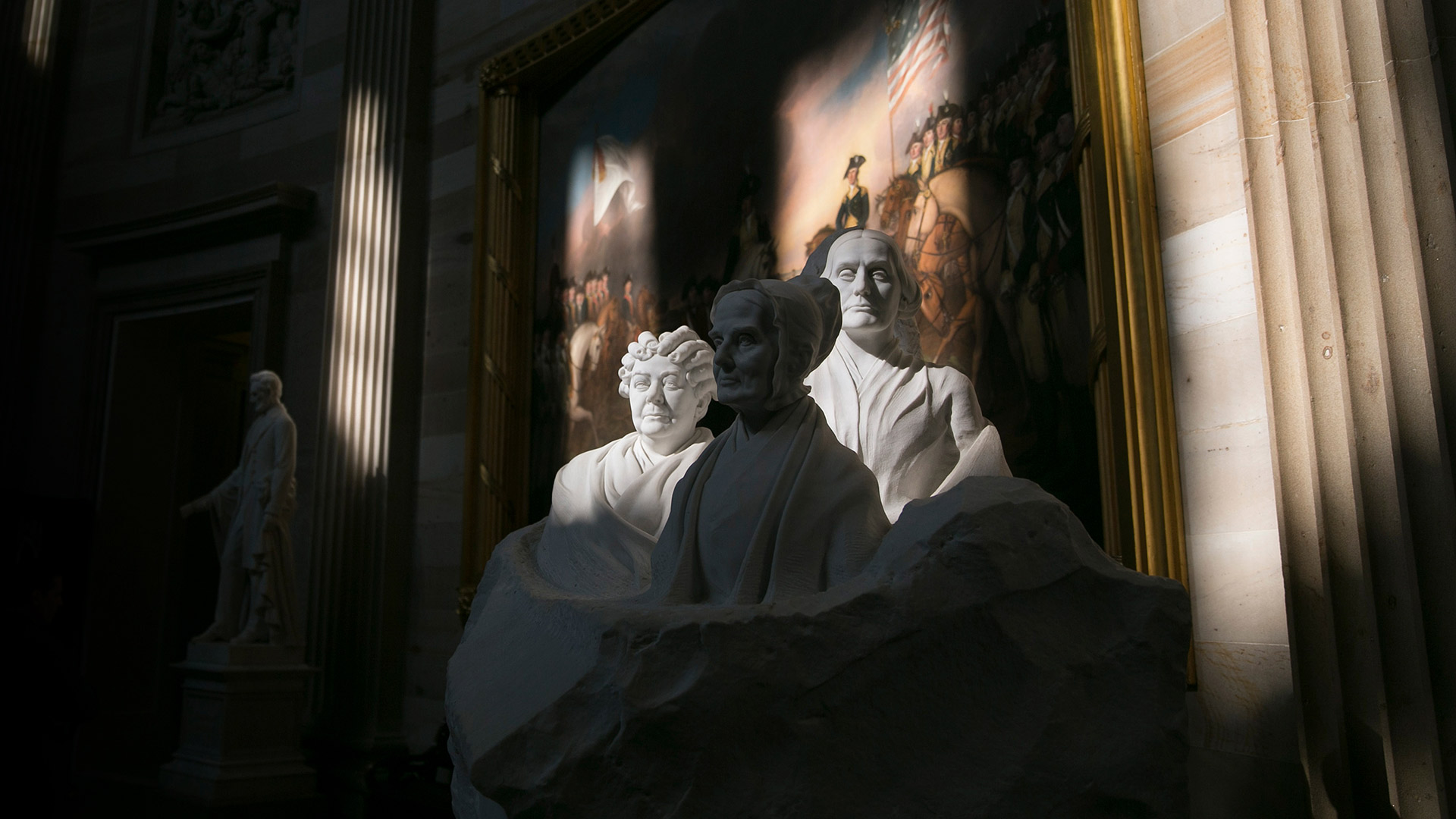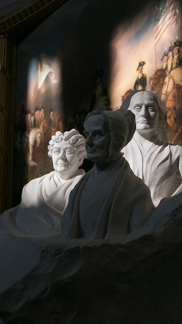 For the first day of Women"s History Month, we"ve come to the Capitol Rotunda in Washington, DC, to view the Portrait Monument, which depicts three founding mothers of the 19th-century women"s rights movement. Elizabeth Cady Stanton, Lucretia Mott, and Susan B. Anthony are particularly known for their efforts to gain American women the right to vote.