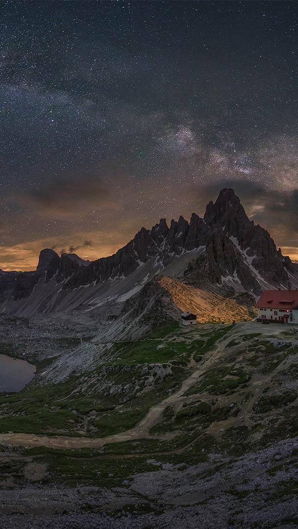 This trio of peaks, known as the Tre Cime di Lavaredo, is located in the Sexten Dolomites of South Tyrol, Italy. The mountain group is one of the best-known in the Dolomites and tourists visit from all over the world to hike its trails. You"ll enjoy a breathtaking view of the peaks from all angles and in the summer, you"ll see a beautiful array of wildflowers. Make sure to plan ahead if you want to hike or camp under the moonlit sky and bring plenty of water and snacks. These peaks are part of the Dolomites World Heritage Site, which was designated in 2009.