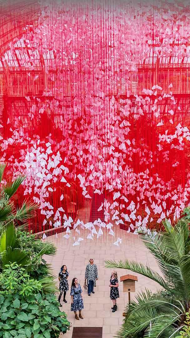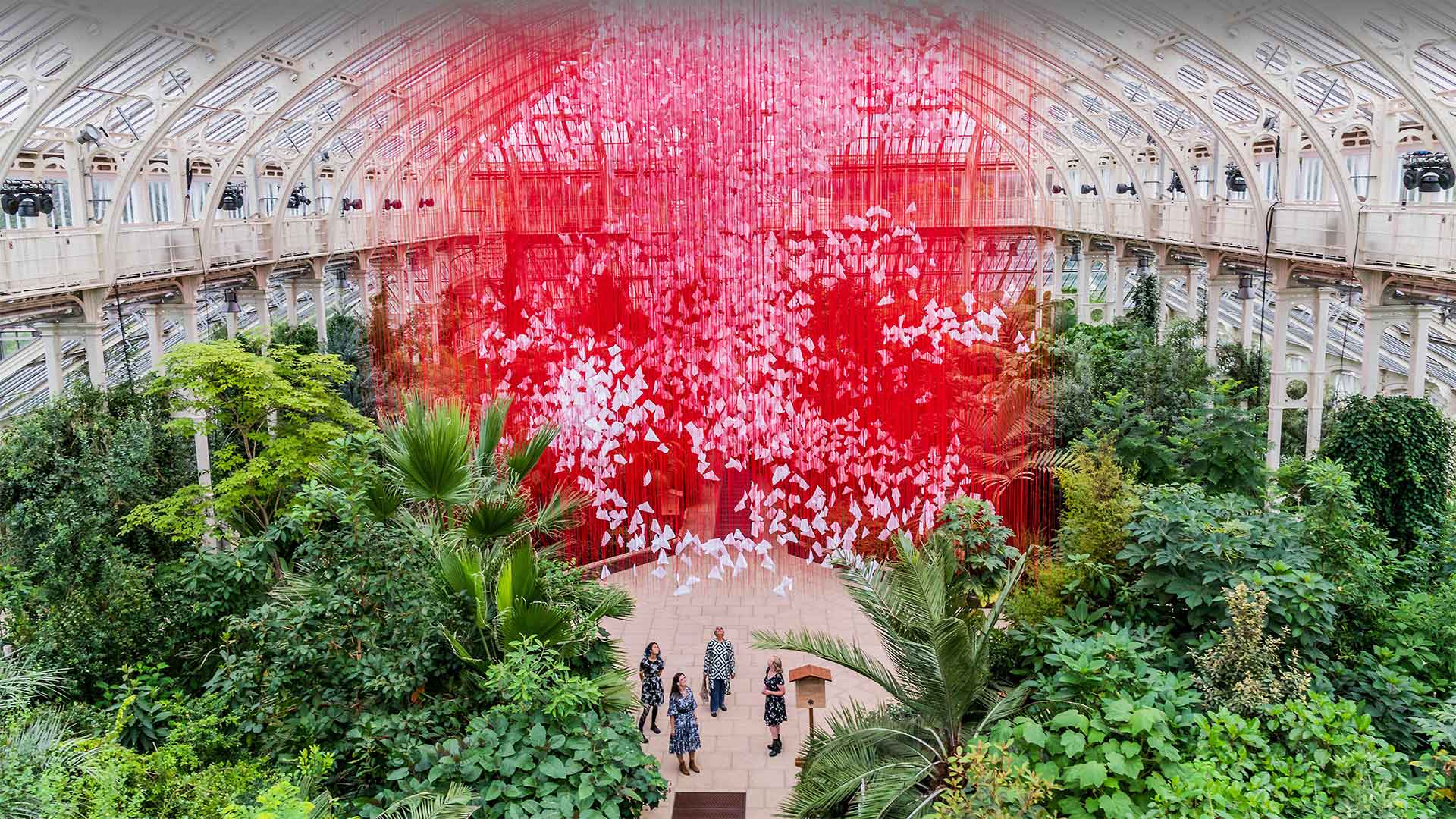Get out your pen and paper—it"s International Haiku Poetry Day! Haikus originated in Japan as the opening segment of a larger poem called a renga. Eventually they became individual poems of their own. A traditional haiku consists of 17 phonetic units—similar to a syllable—in a 5, 7, 5 formation. Though simple, a great haiku creates a sense of beauty and a connection to nature. That connection was captured in the artwork seen here, "One Thousand Springs," an installation of 5,000 haikus suspended within a web of red threads by artist Chiharu Shiota. It was part of the 2021 Japan Festival at Kew Royal Botanic Gardens in London. Here"s some inspiration for you to write a haiku yourself: