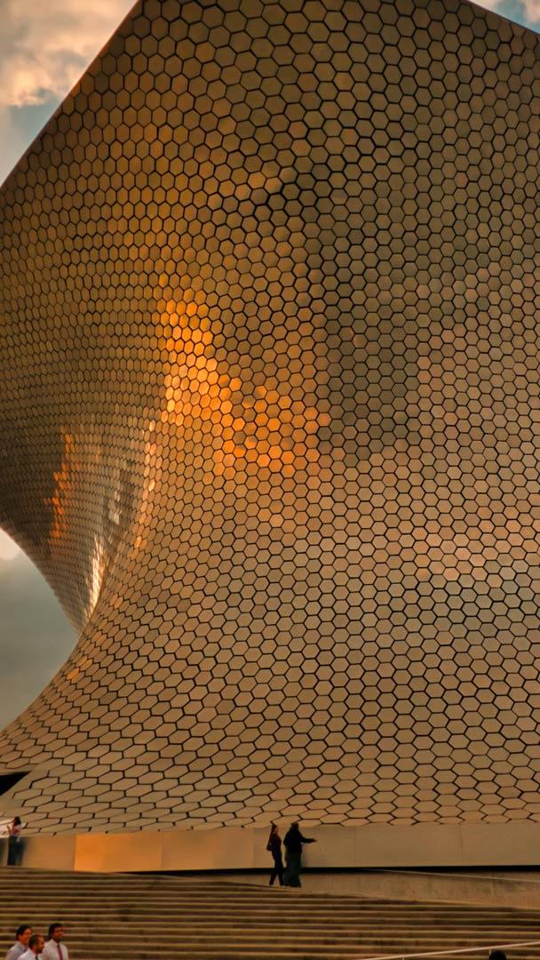 For International Museum Day, we’re featuring the towering aluminum-clad Plaza Carso building, part of the Museo Soumaya in Mexico City. It was built to house Mexican billionaire Carlos Slim’s vast art collection, which includes the largest collection of sculptures by Auguste Rodin outside France. The building, designed by Fernando Romero, is a sculpture in itself. Covered in 16,000 hexagonal aluminum plates, the windowless facade looks stunning and helps protect the artwork inside from intense sunlight. It is one of many eye-catching museum buildings worldwide which attract interest both for their collections and for their creative design.