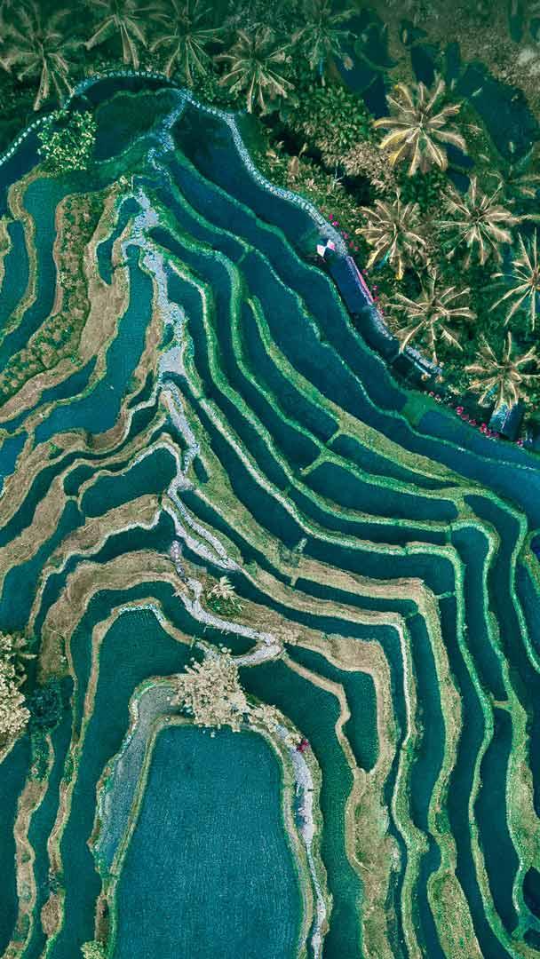 Sweeping downhill in our homepage image are the famous rice terraces of Tegallalang, one of Bali"s most popular tourist attractions. They are carved into the side of a valley near the town of Ubud and use the traditional Subak irrigation system, which dates back to the 9th century. Bali"s rivers and streams provide year-round water for its crops but here people work hand-in-hand with nature, and a network of irrigation channels distribute water to each paddy field. They carefully tend rice plants during the growing season, as generations have done before them, before harvesting and distributing the rice between the community. The Subak system is so important in Balinese culture, it has been recognised by UNESCO. These terraces offer visitors panoramic views over the surrounding rice fields and lush landscape, as well as a picturesque example of people living in harmony with nature.