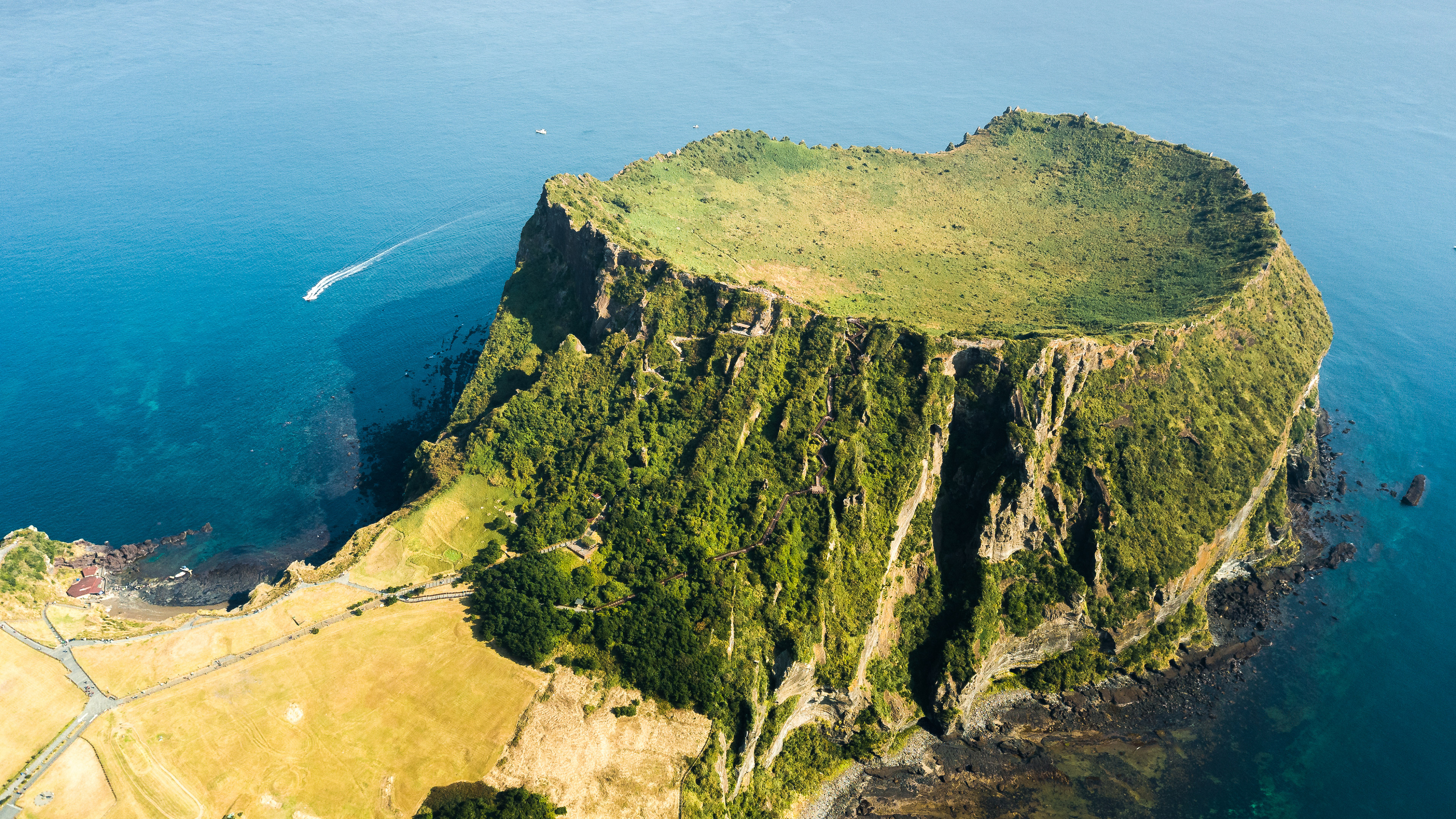The South Korean island of Jeju is full of wonders. If you don"t have a chance to visit its volcanic landscape, ancient stone statues, waterfalls, and rocky coastline, you can dive into the island"s fascinating chronicles from the comfort of your computer. The star of today"s image, Seongsan Ilchulbong (Sunrise Peak), is the island"s rare tuff cone formation, created by an underwater volcanic eruption about 5,000 years ago. Tuff cones are also called ash cones, referring to the accumulated ash settling in a cone formation after the lava"s forceful explosion. Seongsan Ilchulbong was added to the UNESCO World Natural Heritage List in 2007.