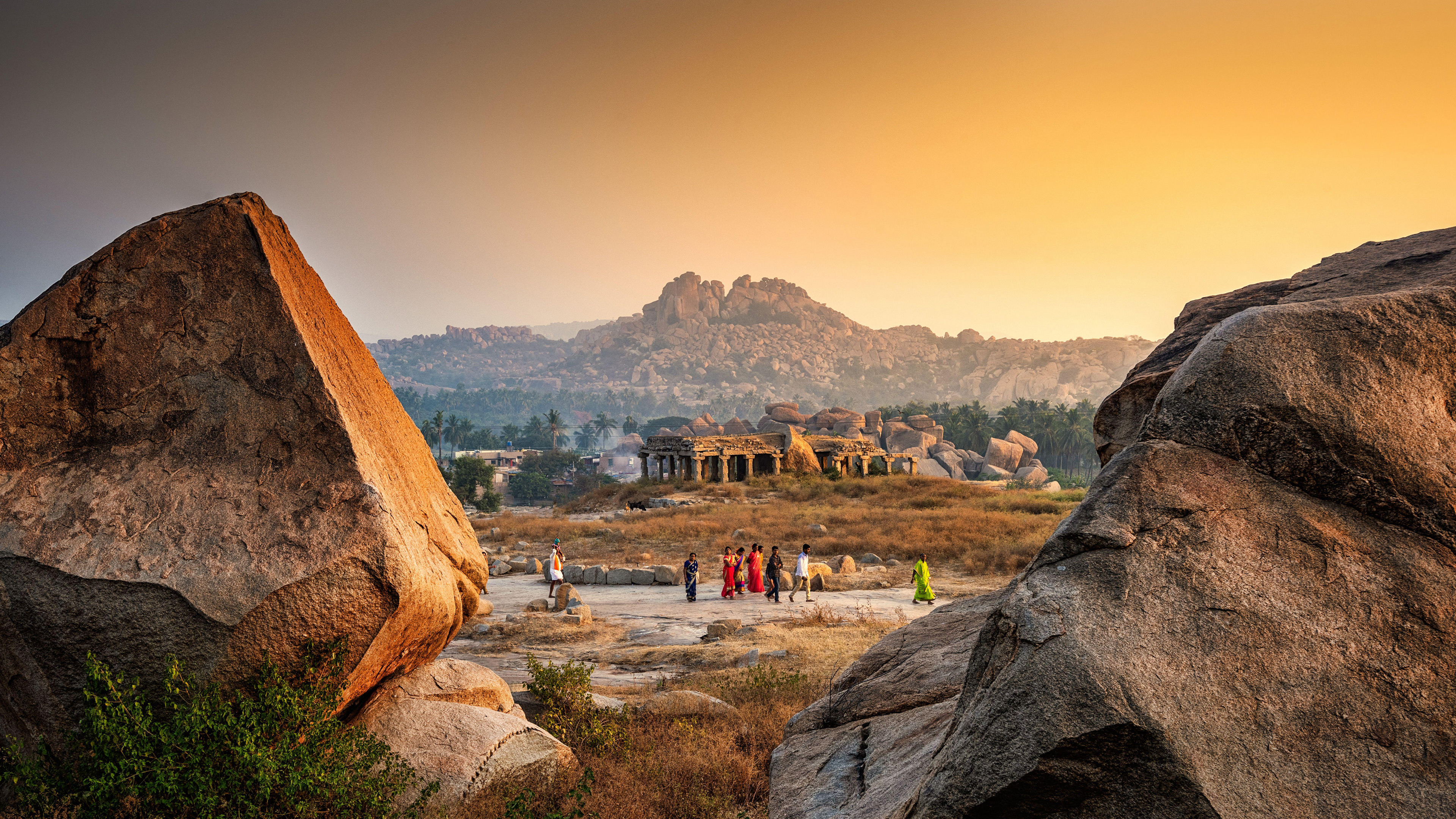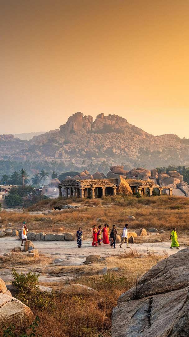 Hampi is a UNESCO World Heritage Site in Karnataka, India. The group of monuments—ancient temples, majestic palaces, and intricate ruins—are remnants of the former capital city of the Vijayanagara Empire, which ruled much of South India between the 14th and 16th centuries.
