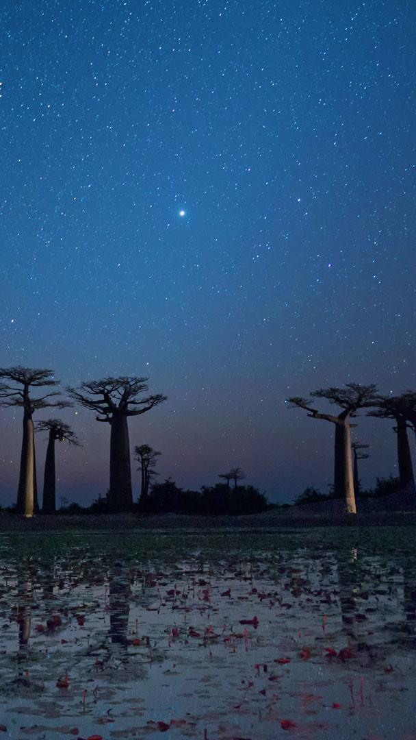 Who needs fireworks when you have a starry view like this? June 26 is Independence Day in Madagascar, marking the date in 1960 when the island country off the coast of East Africa broke free from France’s rule. In honor of the occasion, we’re featuring the baobab tree, Madagascar’s national tree, known for its oversized trunk. Several species of the baobab are endemic to Madagascar–which isn’t surprising, as about 90 percent of the plants and animals here are found nowhere else on Earth.