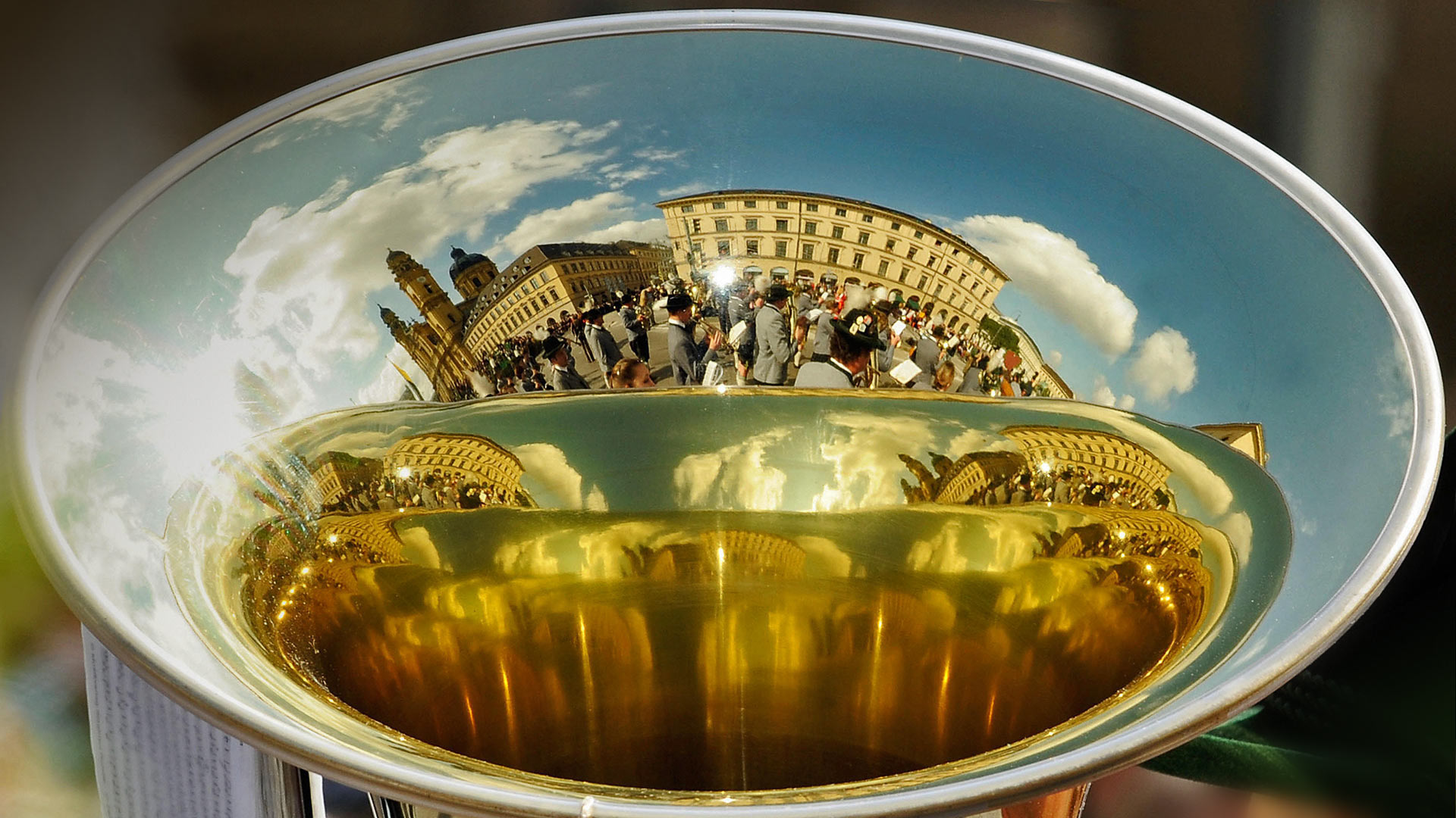 Our photo today shows the crowds at an Oktoberfest parade reflected in the bell of a brass horn. In Munich, Germany, the 16-day festival will include many brass bands marching and playing celebratory Bavarian folk music, while other bands will play for the beer drinkers in the tents and beer halls that dot the festival grounds. Why call it ‘Oktoberfest’ when it begins in September? The original Oktoberfest began on October 12, 1810, as a massive one-day royal wedding celebration open to the public. On October 12 the following year, Munich citizens commemorated the wedding with another party, and an annual tradition was born. The festivities grew longer and longer each year over the course of two centuries, and Oktoberfest eventually extended into the weeks before the original date. Organizers supported the earlier start to take advantage of better weather in late September, but the party will forever be known as Oktoberfest.