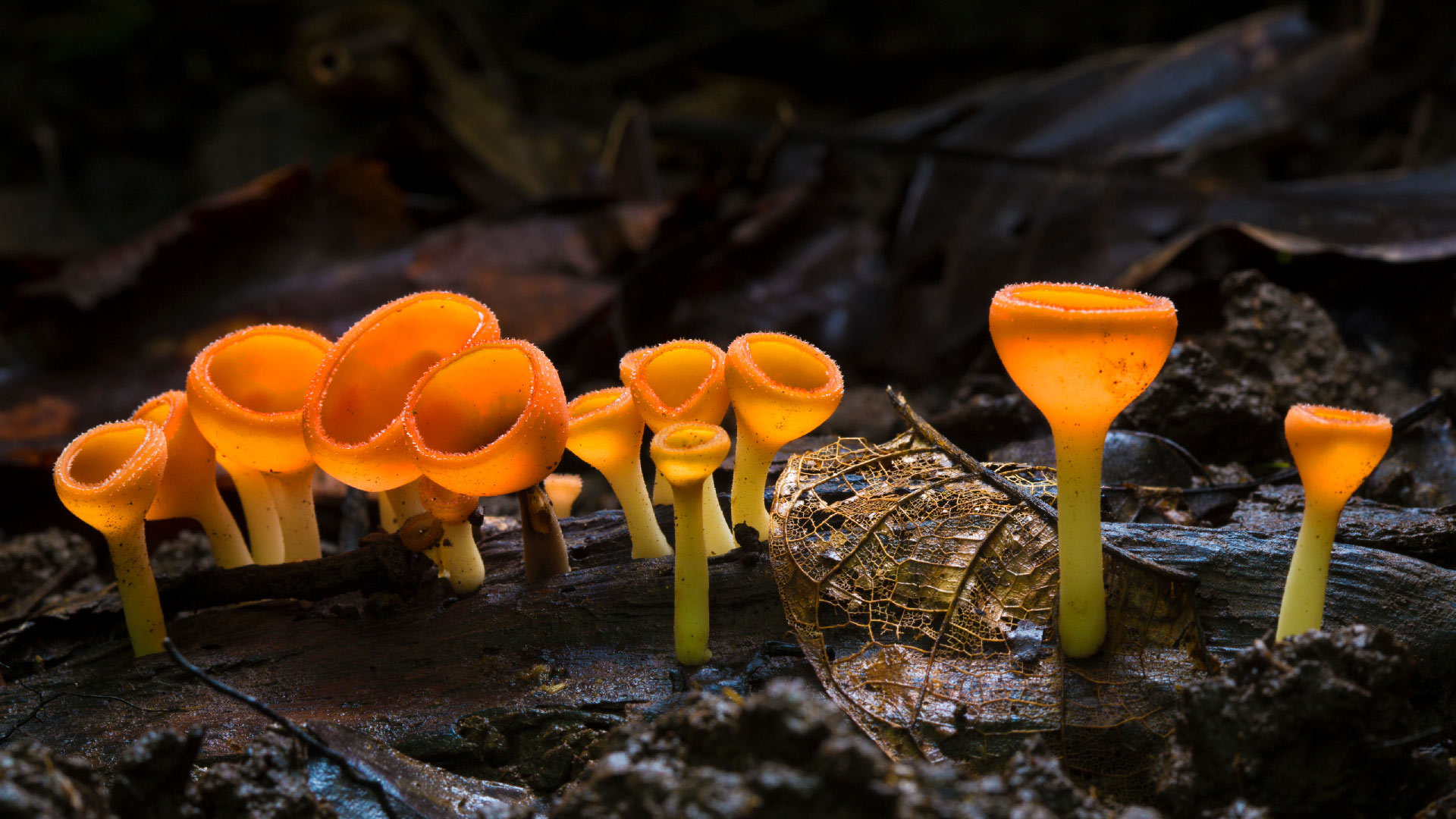 It’s peak season for many kinds of mushroom, but to find this unique species you’ll have to travel someplace tropical. This cup fungus, cookeina, was photographed growing on the rainforest floor in Costa Rica. Like other fungi, it serves as a decomposer, helping to break down dead plants and animals in the ecosystem. Their unique cup shape aids in spore dispersal; it helps raindrops to splash spores out into the forest where the fungi can spread.