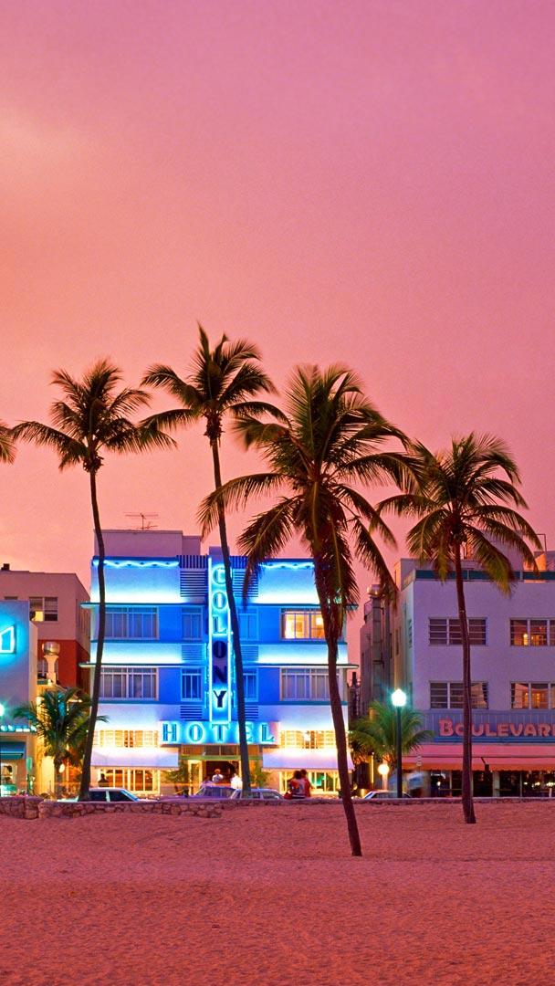 We’re getting Don Johnson vibes from this image of Miami’s iconic Ocean Drive. It’s a landmark that’s appeared in many TV shows and movies over the years while also being home to celebrities like Gianni Versace. This weekend the city is celebrating the neighborhood’s distinct architecture. Art Deco Weekend is a long-running, free community festival that shines a light on the unique architecture here on Ocean Drive and throughout the Miami Beach Architectural District, better known as the Miami Art Deco District. Art Deco style, which reached its peak in the 1920s in the United States, is known for streamlined designs and symmetrical geometric figures, a look that pairs nicely with Miami’s ocean views.