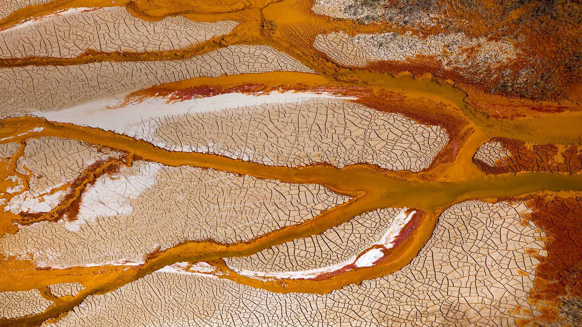 The Rio Tinto, in Andalusia, Spain, gets its strange color from dissolving iron deposits in the highly acidic water. Beginning more than 5,000 years ago, this area was mined for gold, silver, and other treasures. And archeological evidence suggests that about 3,000 years ago this may have been the site of King Solomon’s legendary mines. Scientists believe that pollution from the mines contributed to the extreme ecological conditions we see in the Rio Tinto today.