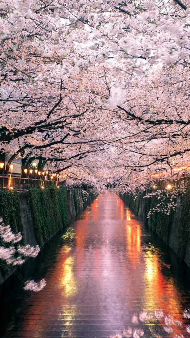 Cherry blossom season in Japan is a beloved tradition that involves family gatherings, festivals, and spending time outdoors. Admiring the ‘sakura’—or cherry blossoms—has been a national pastime for centuries. The custom of enjoying the cherry blossoms is known as ‘hanami,’ and it’s commonly done by picnicking under the flowering branches. For late-night picnics, participants hang paper lanterns in the trees to illuminate the blooms. This image comes from the Meguro River, a popular place for viewing the sakura in Tokyo. Are there cherry trees blooming where you live?